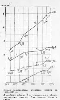 Общий выпуск изделий из ячеистых бетонов в 1973 г., по данным НИИЖБ, составил 5 млн, 180 тыс. м3