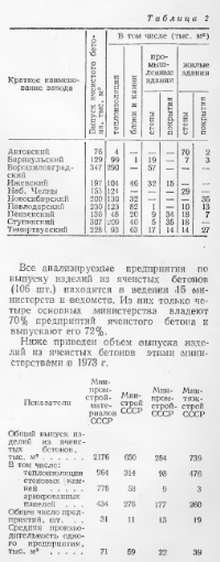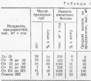 В табл. 1 приведен уровень концентрации производства ячеистых бетонов по данным 1973 г., подтверждающий большую рассредоточенность этого производства среди многих мелких предприятий П1 и [3].