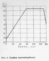 В соответствии с режимом термообработки в сердечники подают острый пар. а затем холодную воду. Освобождают стяжные винты и гидроцилиндрами поднимают поддон и фиксируют упорами (конец цикла). Происходит автоматическая выпрессовка изделия, борта раскрываются, с помощью крана изделие снимают с установки и подают на поверхность
